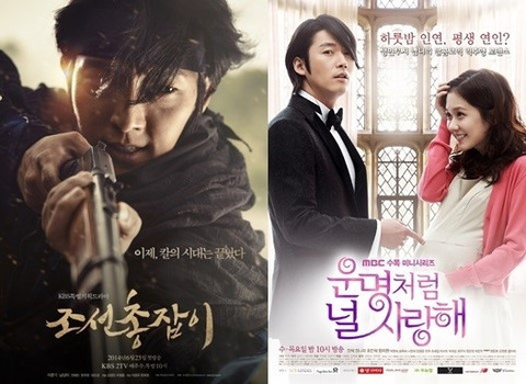 KBS 2TV「朝鮮ガンマン」(脚本:イ・ジョンウ、ハン・ヒジョン、演出:キム・ジョンミン、チャ・ヨンフン)とMBC「運命のように君を愛してる」(脚本:チュ・チャノク、チョ・ジングク、演出:イ・ドンユン、キム・ヒウォン)の視聴率が先週より下落した。